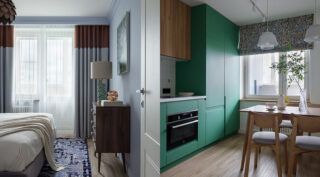 Эту квартиру семейная пара получила в наследство и пригласила дизайнера для того, чтобы улучшить планировку и создать новый интерьер. Заказчики и задачи Владельцы квартиры молодая семья. Супруг работает в IT, часто из дома. Супруга учитель математики. «Заказчики отличаются высокой творческой активностью и разнообразными хобби от путешествий и занятий спортом до игры в бильярд. Им нравился …