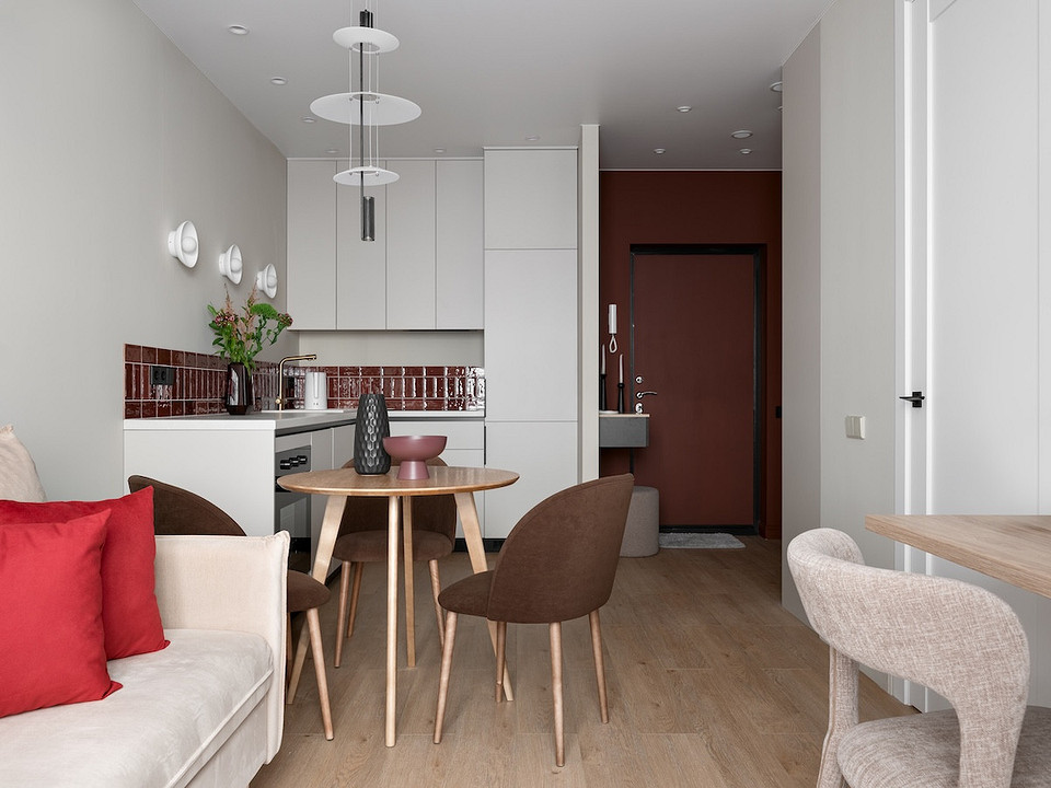 Владелица этой квартиры — инвестор. Она уже не первый раз обратилась в Yuloo Studio для обустройства квартиры под сдачу в аренду. Конкретных задач не стояло — дизайнеры и так знали, что квартира должна «закрыть» потребности широкой аудитории потенциальных арендаторов. Жилой комплекс, где квартира расположена, находится в Красногорске. Дизайнеры предположили, что будущие жители могут работать из дома, поэтому одной из задач стало обустройство рабочего места.